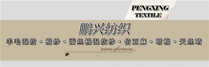 东莞市鹏兴纺织制品有限公司,是一家专业销售各类羊毛混纺、晴棉、粘棉、包芯纱、棉纱、丝光棉等各类的知名纱线企业。公司通过多年的发展壮大,拥有完善的管理体系,服务体系和销售体系。为客户提供专业的意见,严格控制产品质量,保障客户商誉,以客户所需为己任,以诚为本,达到共赢!鹏兴纺织坚持用好原料,全力打造出最具竞争力的广东毛纱一流品牌,力求发展成为国内外专业毛料、辅料优质供应商。鹏兴纺织设有染厂,产量每月高达1000吨的染色能力,确保鹏兴纺织的优质色纱能够第一时间染整出厂,并以最快速度到达客户手中!欢迎广大客户莅临参观指导,期待与各界同仁携手合作共创辉煌!